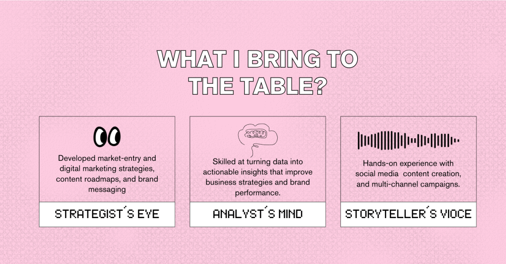 After studying in Germany and the USA, I bring a global perspective, but also a playful curiosity that keeps me testing, tweaking, and creating. I’m especially passionate about social media and the fashion/luxury world, where creativity and storytelling can turn a brand into a lifestyle. For me marketing is about crafting creative solutions that spark attention, inspire conversations, and leave a lasting impression.